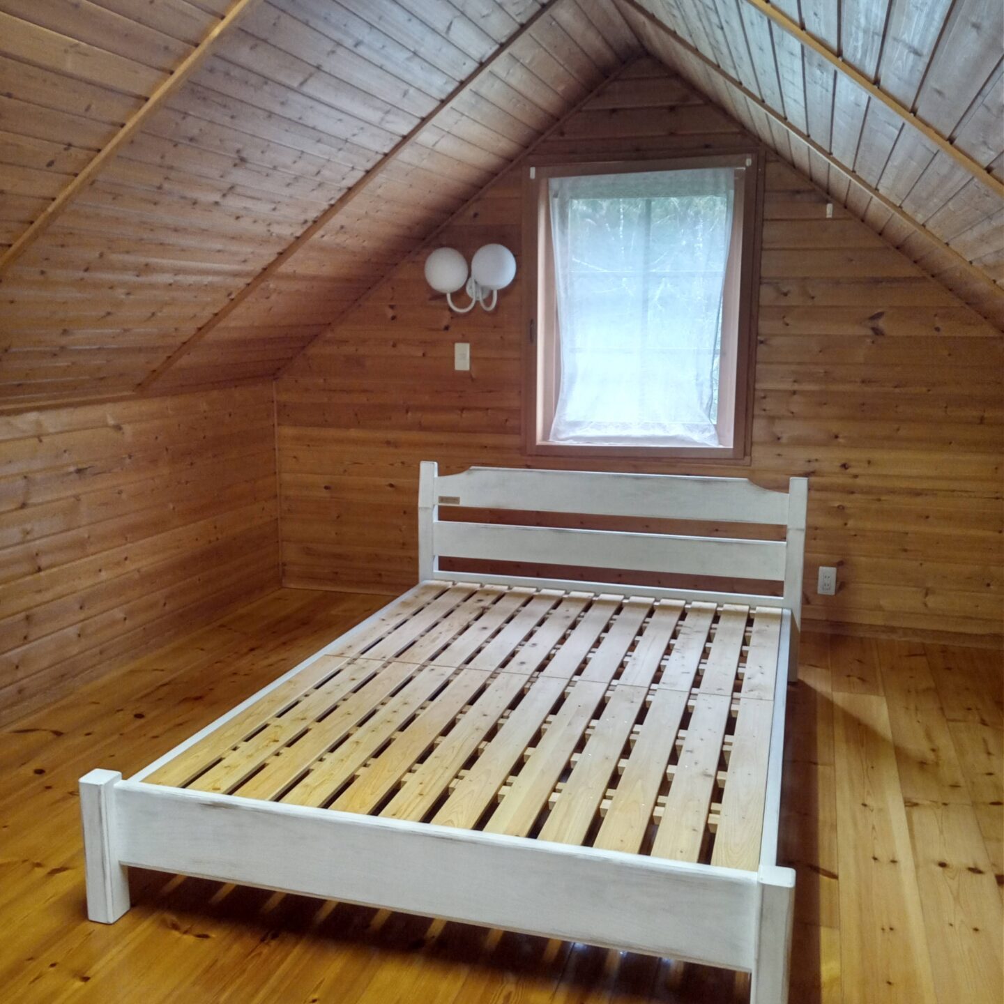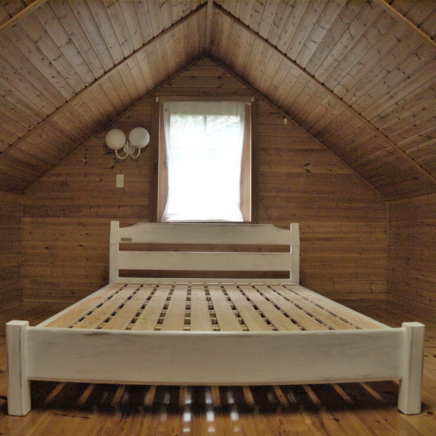 山小屋風民泊施設に馴染むよう、白塗りで使い古されたような仕上げをご希望され、つくらせて頂きました。