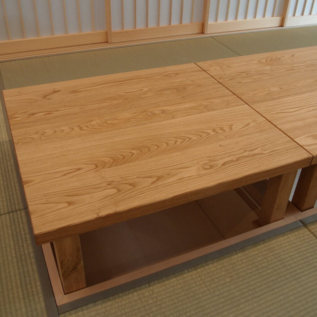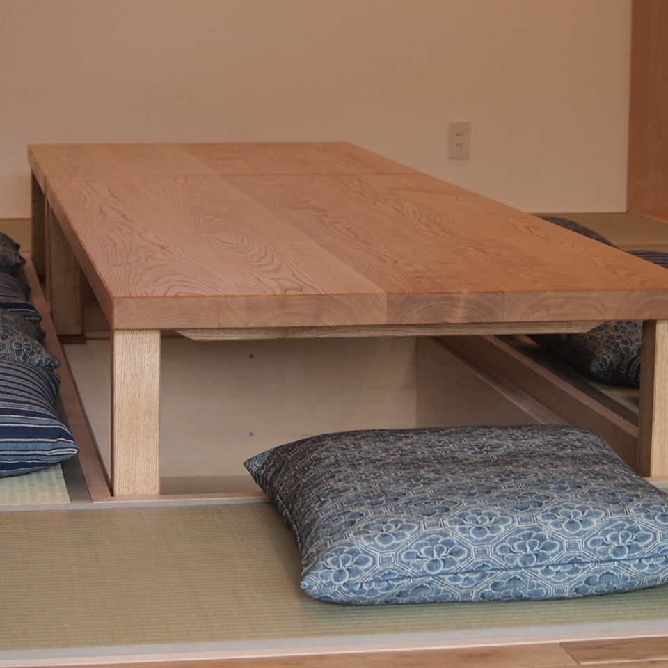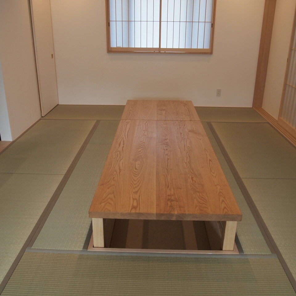 新築の爽やかな空間に合う掘り炬燵テーブルをつくりたい、とのご要望からつくらせて頂いた素材の魅力を生かすシンプルデザインなテーブルです。