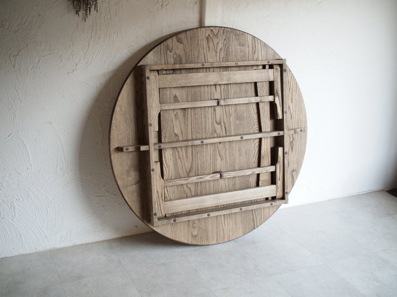 | 突っ張り板式 | 昔ながらの構造。金具を使わず板のしなりで固定する方式。素朴で安定感がある。 | 不可(脚が干渉するため高さは基本値のみ) | 昔のちゃぶ台に近い雰囲気が好きな方/小~中サイズの円形 | 古材天板との相性が良い |